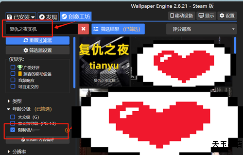 游戏视频可以wallpaper搜索:复仇之夜实机 (需开启红框内选项)